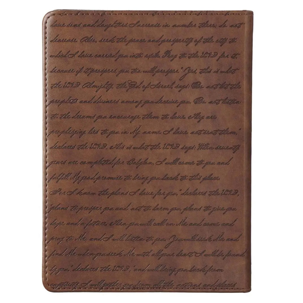 For I Know The Plans I Have For You faux brown leather  is the perfect place to capture your reflections, dreams and goals.