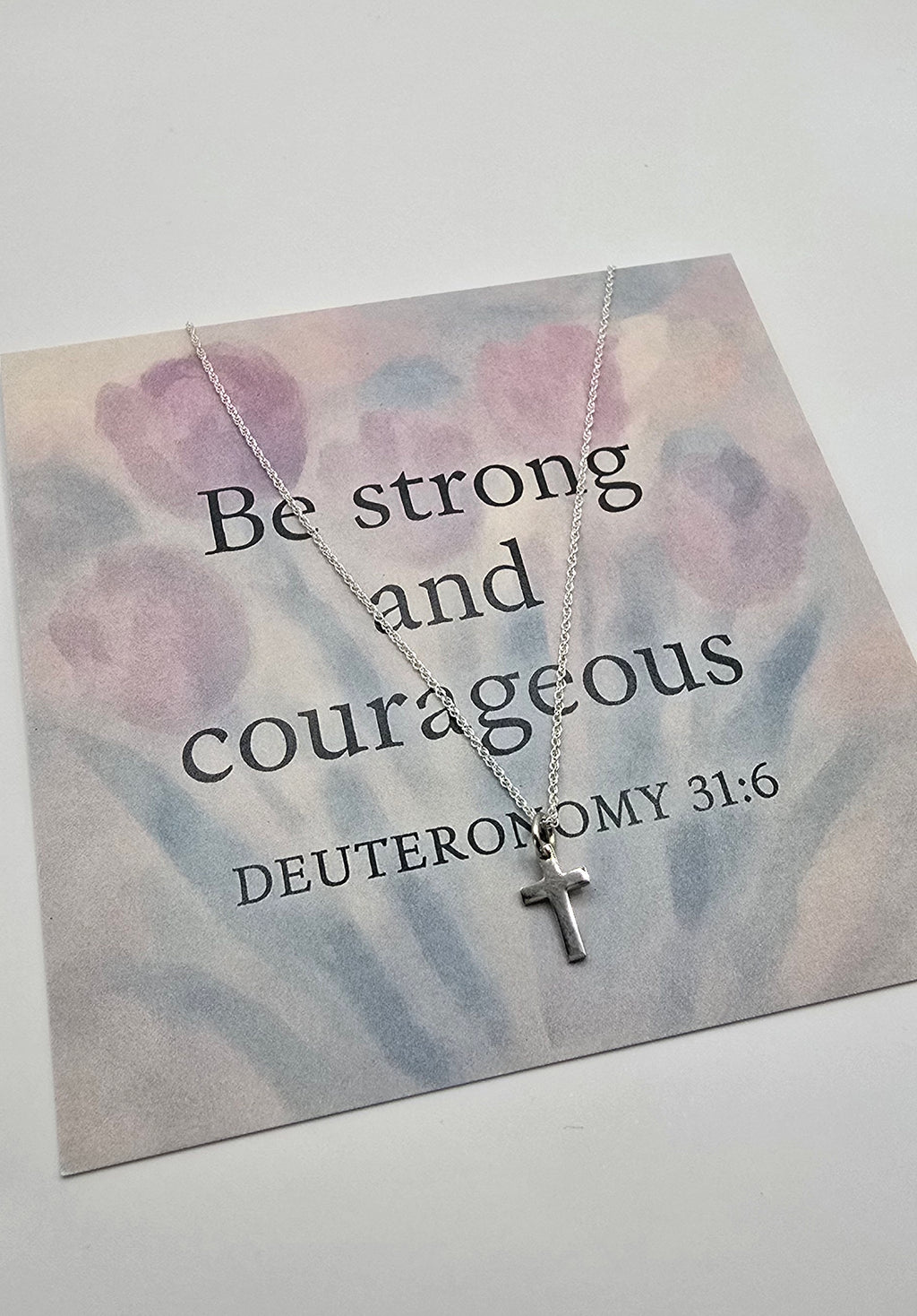 •Sterling Silver small cross charm placed on an 18 in. sterling silver chain.