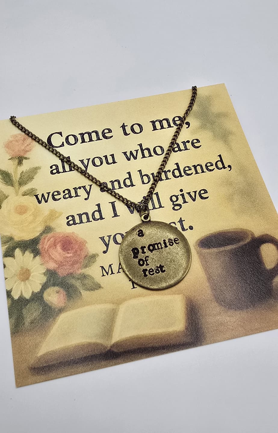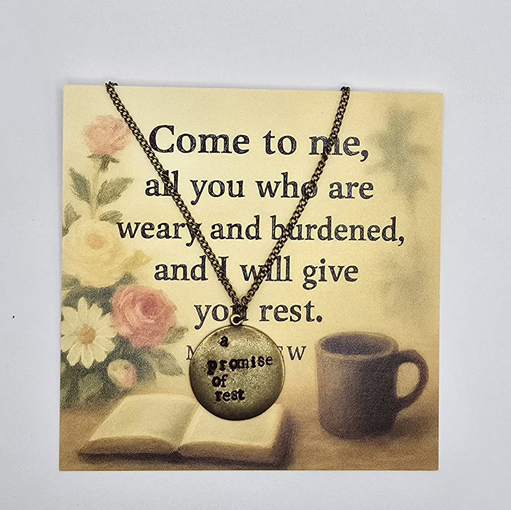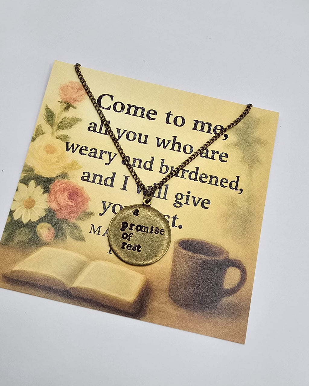 He will give you rest. Wear this necklace as a daily reminder. Bronze is a metal that mixes well with your other necklaces.