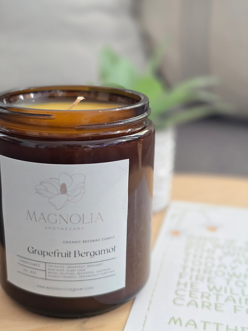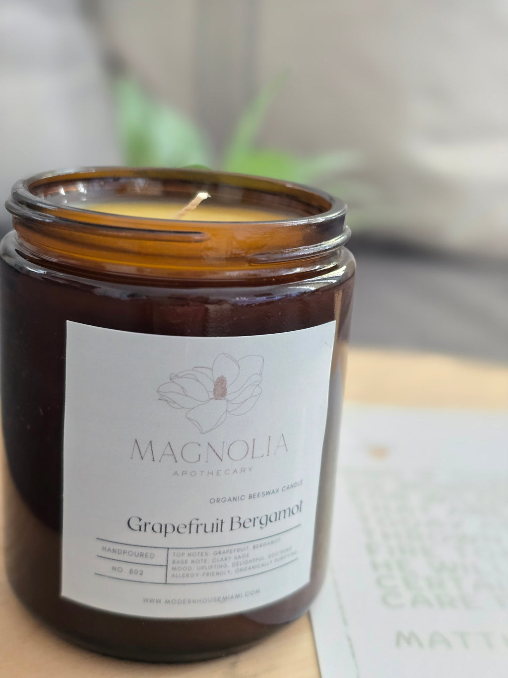Exquisite organic beeswax candle from Magnolia Apothecary in a beautiful 8oz amber jar.