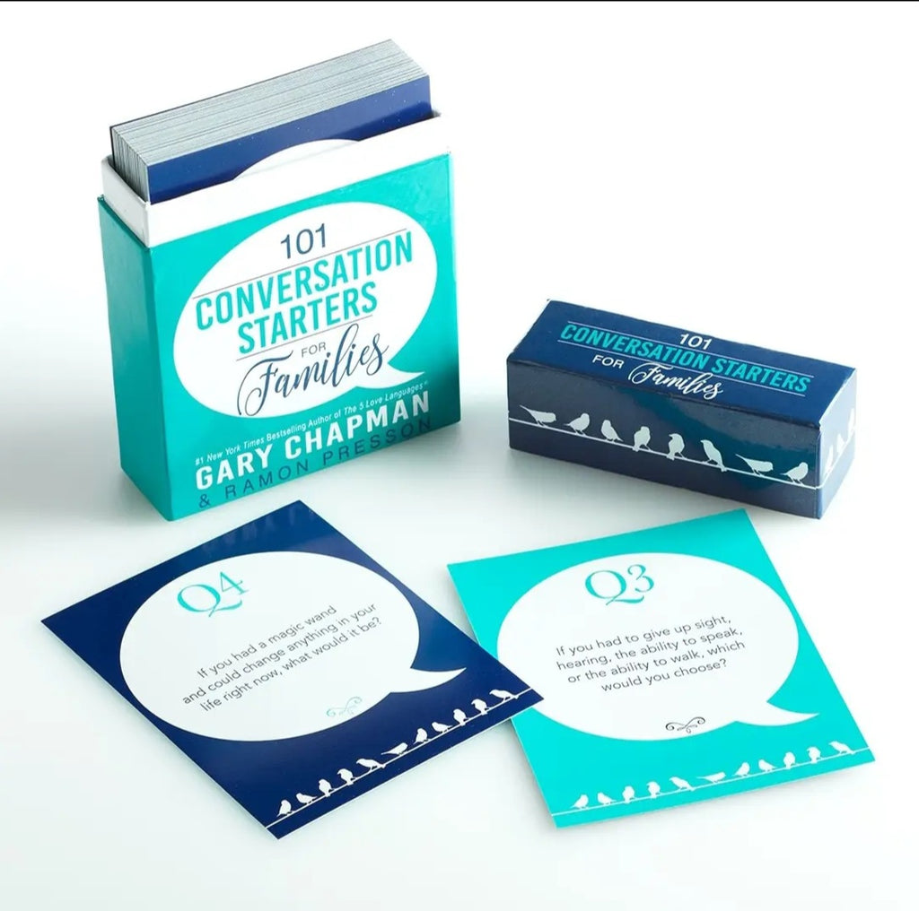 One of the signs of a healthy family Is open and meaningful conversation. But how do you cultivate conversation in a meaningful way? 101 Conversation Starters for Families , brought to you by marriage and family expert Gary Chapman--author of The Five Love Languages, jumps to the rescue with 101 handy conversation cards that are ideal for sharing around the table, on a trip or just about anytime , anywhere.