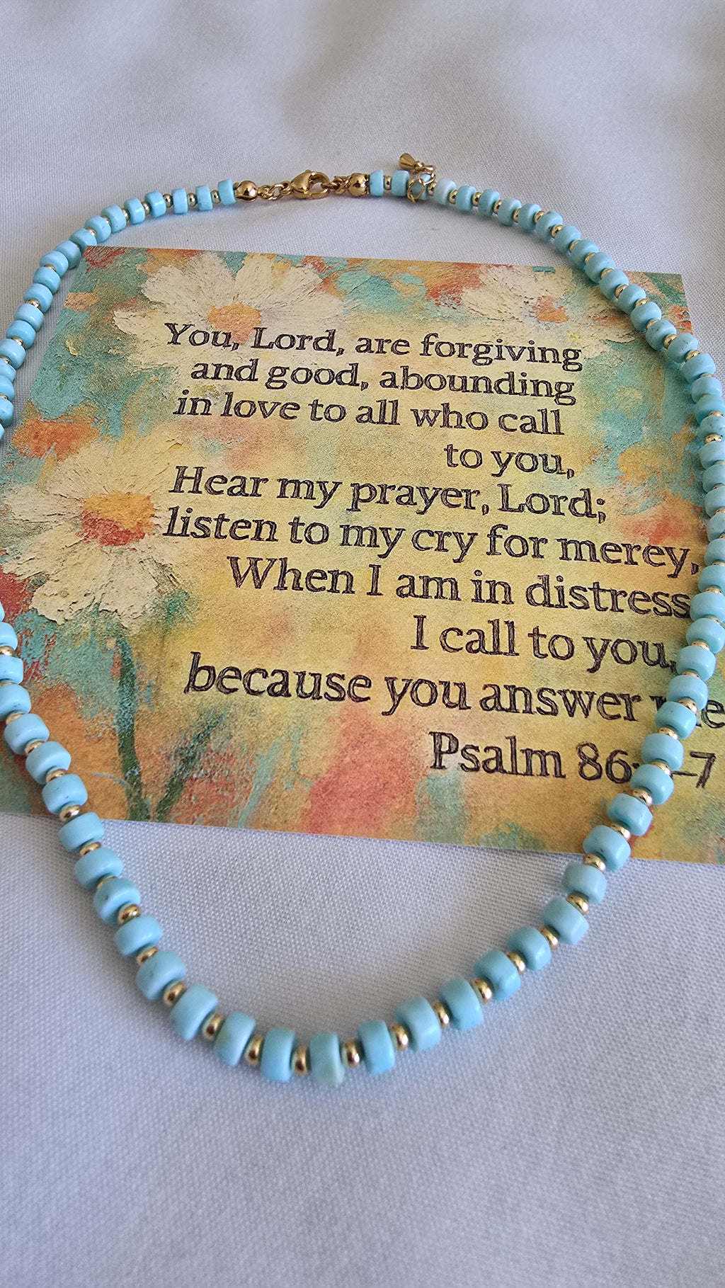 You Hear My Cry--Scripture Card and Turquoise Necklace