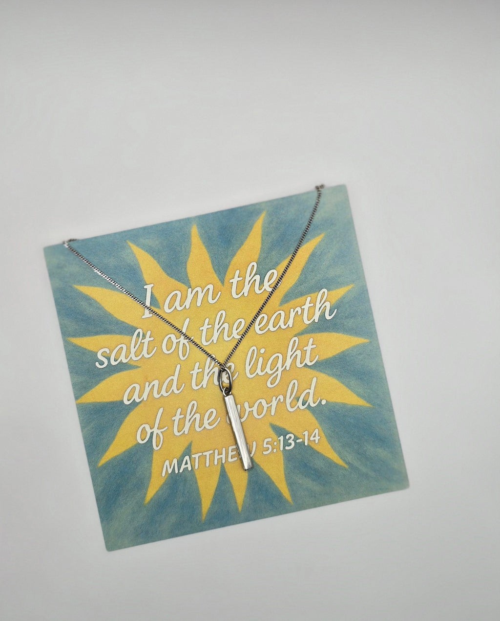 Light Of The World Matthew 5:13 Scripture Card And Sterling Silver Bar"Light of the World" Necklace | Wandering Tulips
