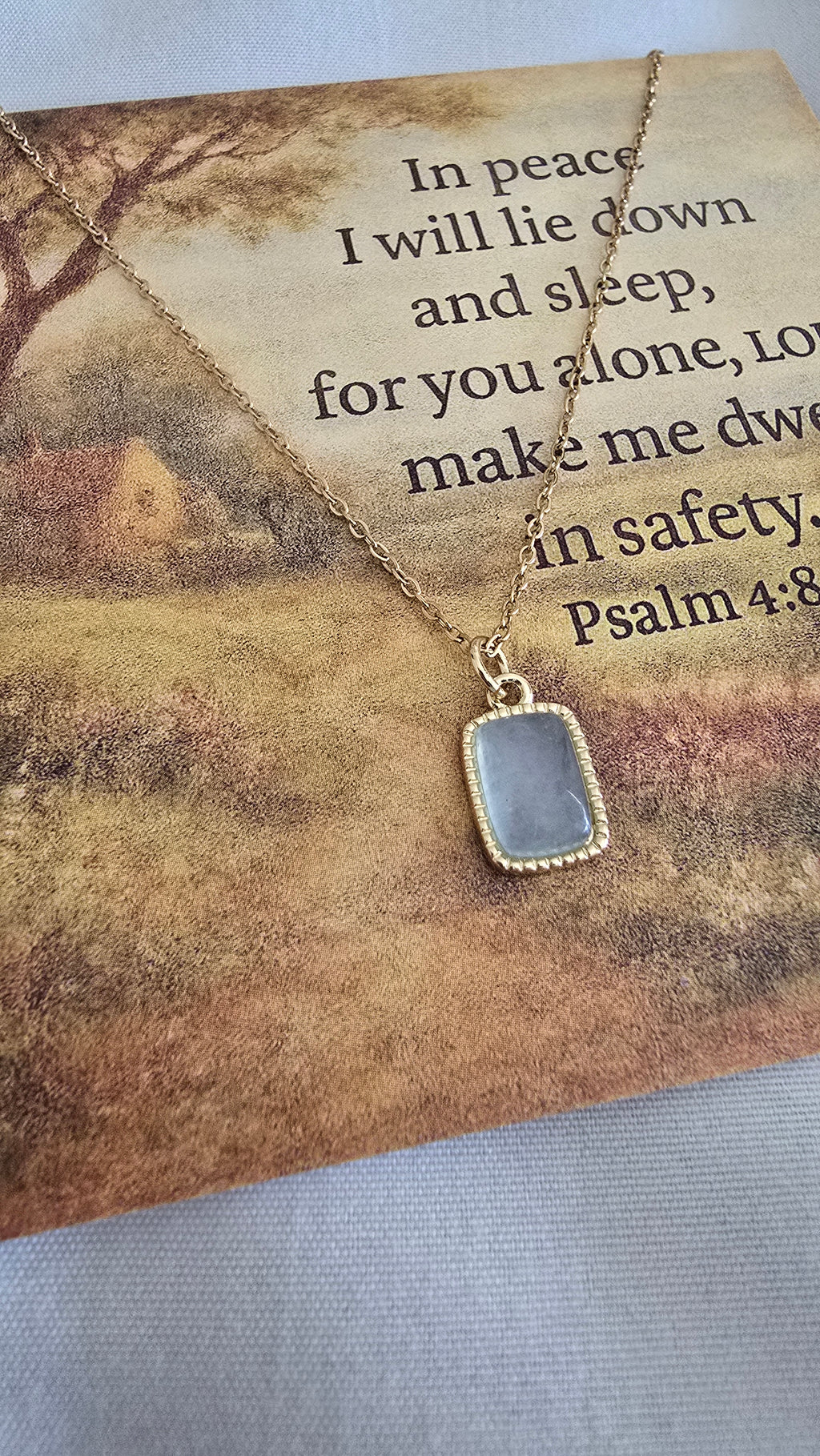 In Peace I Will Lie Down-Scripture Card and an Aquamarine Necklace