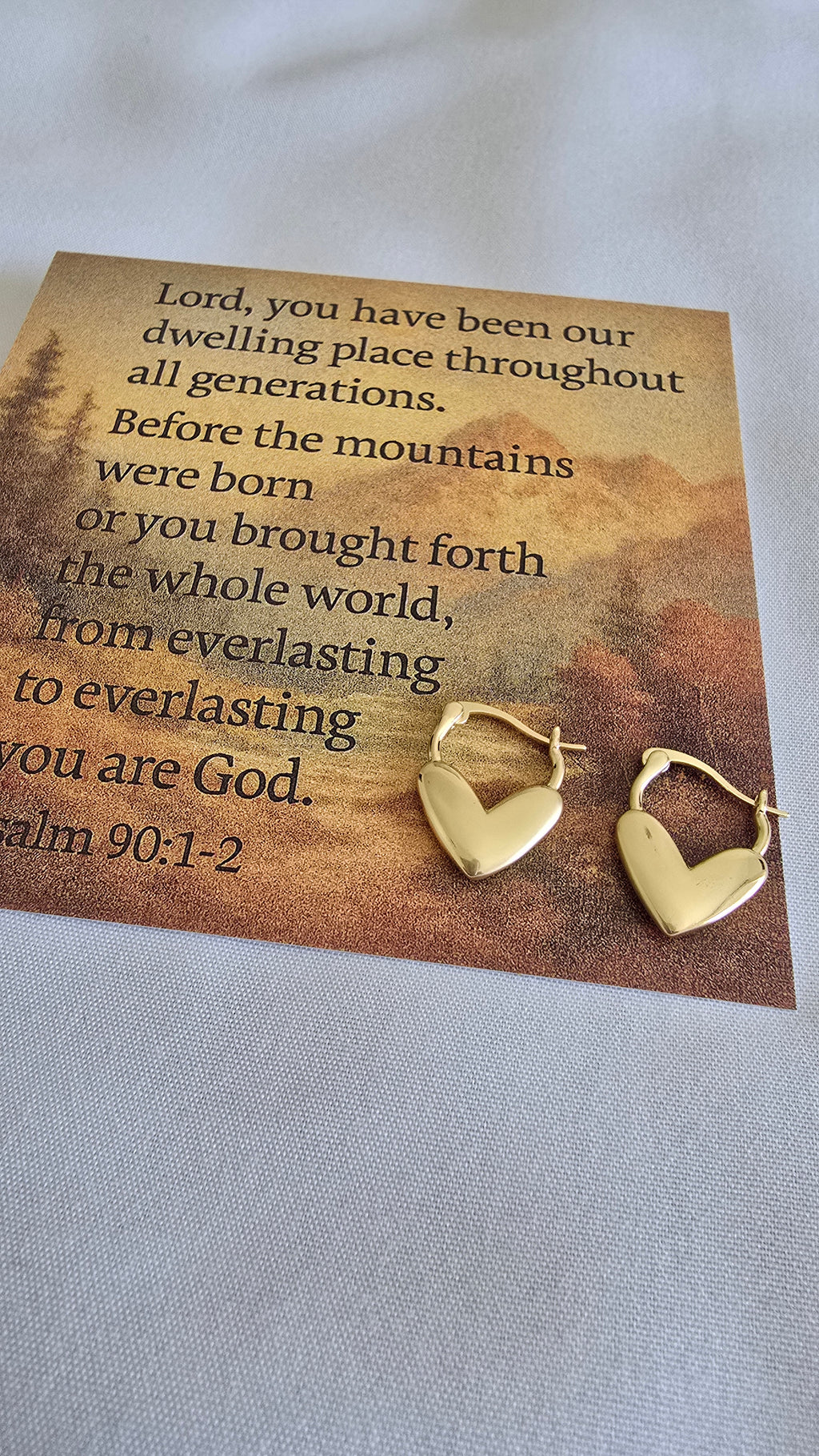 From Everlasting To Everlasting Psalm 90:1-2 24k Gold Filled Heart Latch Hoop Earrings | Wandering Tulips