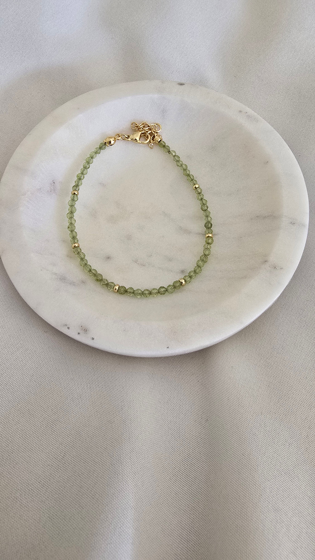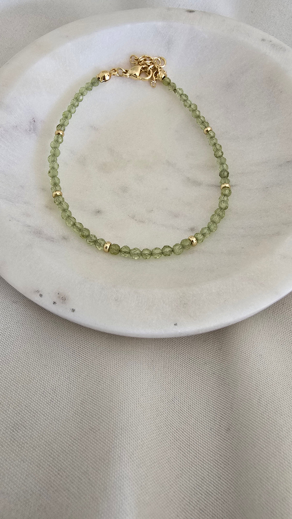 The bracelet is adjustable and lightweight, with a calming hue that evokes peace and renewal. A quiet symbol of the One who lifts us up.
