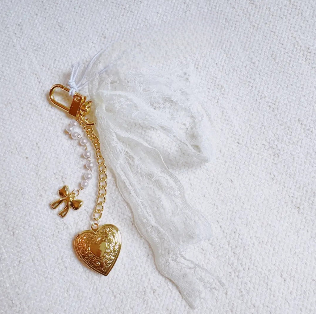 Sweet and romantic, the lace and love heart bag charm adds a feminine finish to any product. Designed with delicate lace details and a heart motif this charm brings a dreamy touch to your handbag or tote.