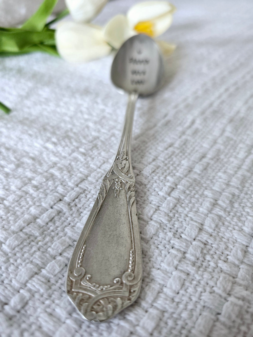 The pattern of the spoon may vary depending on pieces currently in stock. We will always make sure they are just as beautiful. No two pieces will be totally alike because of the silver plate pattern,depth of impression and uniformity of letters.