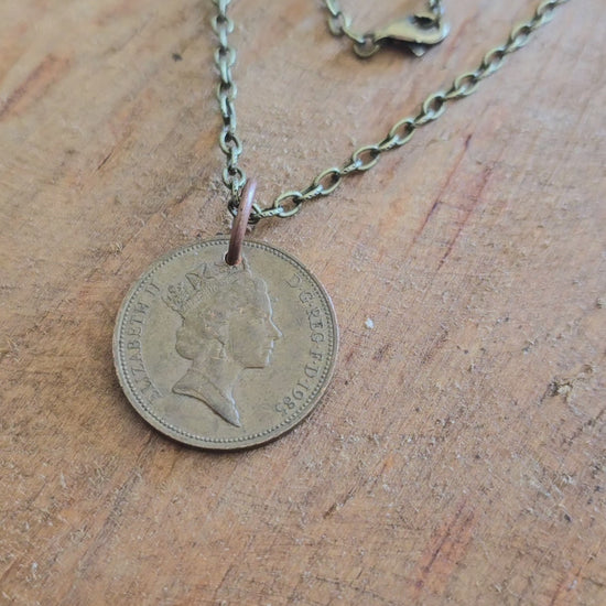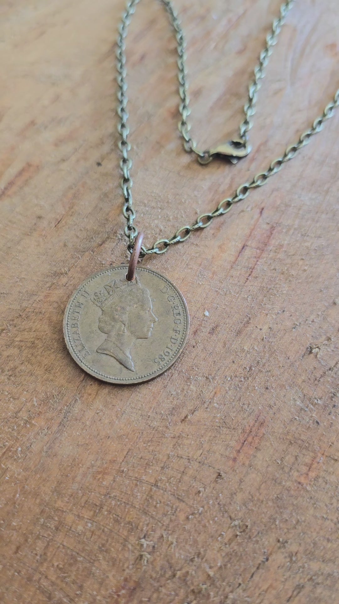 18in antique brass chain with vintage coin. Dress it up or dress it down. Add a gold necklace, a colorful necklace or a silver necklace to make a statement.