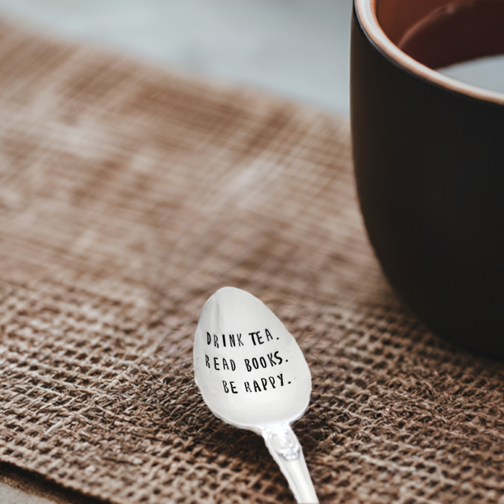 This item is a hand stamped vintage silver plated teaspoon that would make a lovely upcycled gift. It has been cleaned and polished as best to our ability. There are signs of use which leads to the uniqueness of this gift. The stamping is darkened with a food safe marker, but may eventually lighten with use. We highly suggest hand washing.